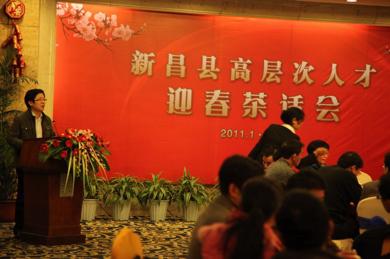 1月13日,,,,,,我公司人力资源总监雷新权、研发中心朱建荣博士及制剂外贸部司理张春华加入了在白云山庄举行的新昌县高条理人才迎春茶话会。。。。。县委常委、组织部长金水法出席聚会,,,,,,全县高条理人才代表、企业人才事情代表与相关部分向导加入茶话会。。。。。