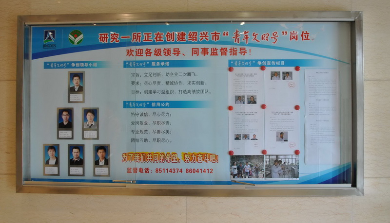 11月23日,,,,,,研究一所接受了绍兴市“青年文明号”检查组2011年在争创的“市级青年文明号”的验收。。。。。。