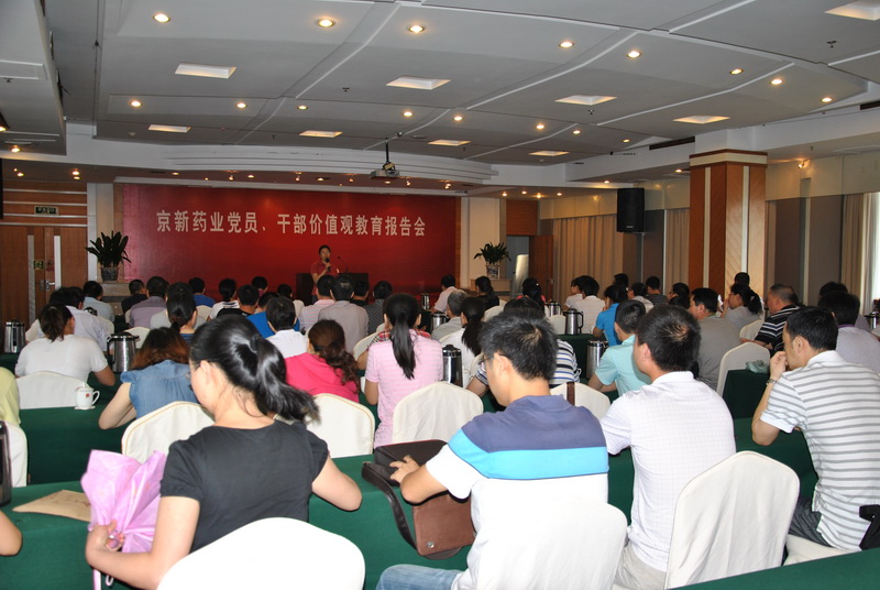 6月17日,,,,,,,,公司党委在鹤群大旅馆八楼天姥厅组织了一次主题为“党员、干部价值观教育”报告会。。。。。。。报告由县直机关党工委书记赵明尧主讲。。。。。。。公司新昌基地全体党员和中高层管理干部近70人加入了报告会。。。。。。。