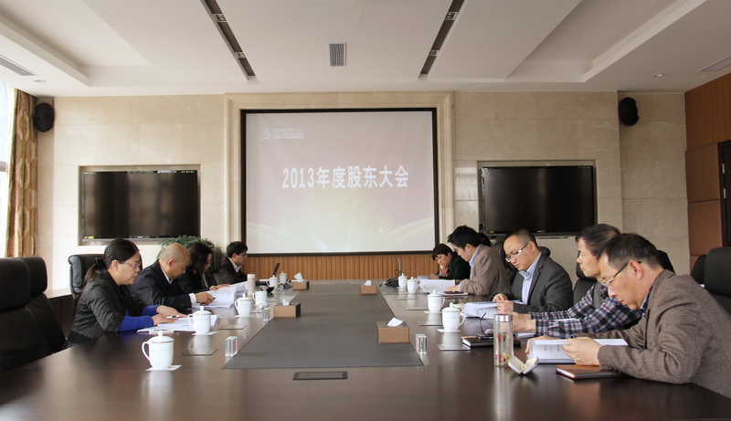 3月25日下昼2:00 , ,, ,,,,公司在行政楼一楼聚会室召开2013年度股东大会现场聚会 , ,, ,,,,本次股东大会接纳现场投票与网络投票相团结的方法举行。。 。。。。。加入本次股东大会表决的股东及股东代表共13人 , ,, ,,,,代表有表决权的股份总数为91,557,453股 , ,, ,,,,占公司股份总数的36.24%。。 。。。。。其中出席现场聚会的股东及股东代表共6人 , ,, ,,,,代表有表决权股份77,336,960股 , ,, ,,,,占公司股份总数的30.61%;; ; ;;;;通过网络投票的股东7人 , ,, ,,,,代表有表决权股份14,220,493股 , ,, ,,,,占公司股份总数的5.63%。。 。。。。。本次年度股东大会由公司董事会召集 , ,, ,,,,公司副董事长陈漂亮女士主持 , ,, ,,,,公司董事、监事、高级管理职员列席了聚会 , ,, ,,,,上海市锦天城状师事务所状师出席本次股东大会举行见证 , ,, ,,,,并出具执法意见书。。 。。。。。本次年度股东大会主要审议了公司2013年度财务状态、谋划效果及利润分派等议案 , ,, ,,,,议案所有获得通过。。 。。。。。(曾成)